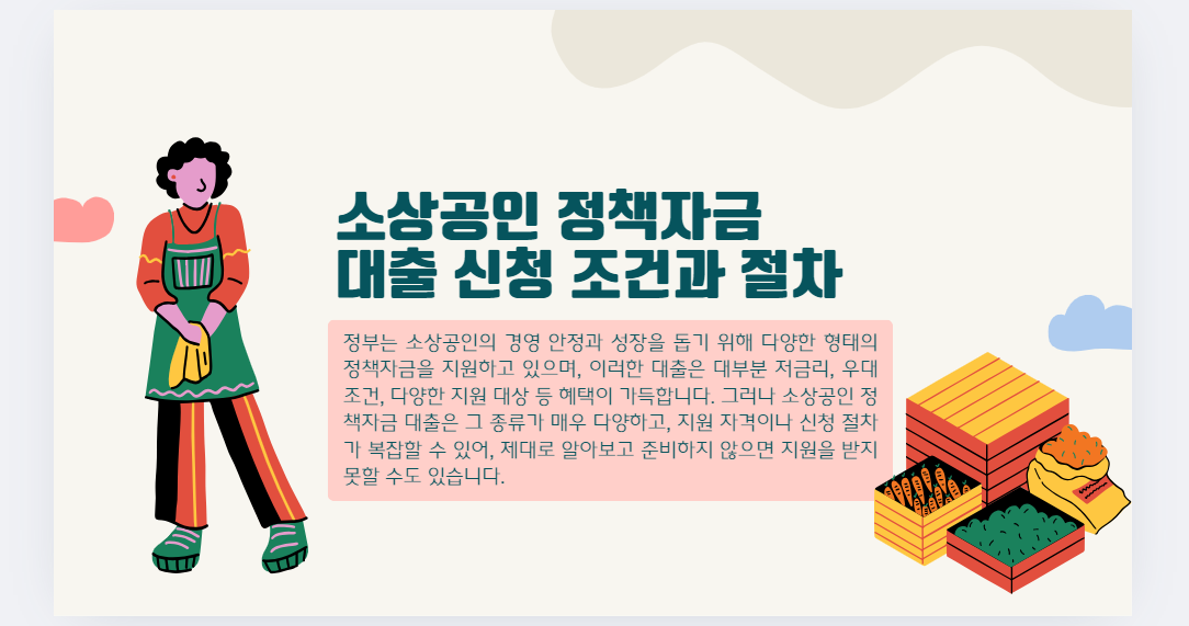 사업을 운영하면서 자금난을 겪고 있거나 새로운 투자가 필요하다면, 소상공인 정책자금 대출이 여러분에게 큰 도움이 될 수 있습니다. 정부는 소상공인의 경영 안정과 성장을 돕기 위해 다양한 형태의 정책자금을 지원하고 있으며, 이러한 대출은 대부분 저금리, 우대조건, 다양한 지원 대상 등 혜택이 가득합니다. 그러나 소상공인 정책자금 대출은 그 종류가 매우 다양하고, 지원 자격이나 신청 절차가 복잡할 수 있어, 제대로 알아보고 준비하지 않으면 지원을 받지 못할 수도 있습니다.